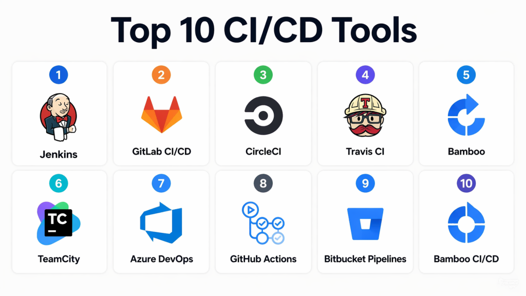 CI/CD tools are essential for automating software development, testing, and deployment. From open-source solutions like Jenkins to enterprise-grade platforms such as Azure DevOps and GitLab CI/CD, teams can select tools based on team size, complexity, and cloud strategy. Evaluating integrations, scalability, and security ensures optimal adoption. Running pilot pipelines on a few shortlisted tools helps validate fit for workflow, accelerating releases, improving quality, and supporting continuous delivery.