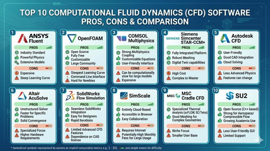 Computational Fluid Dynamics software plays a crucial role in modern engineering, enabling accurate, efficient, and cost-effective simulation of fluid behavior. The right solution depends on your needs—whether it’s advanced capabilities, ease of use, or cost efficiency.