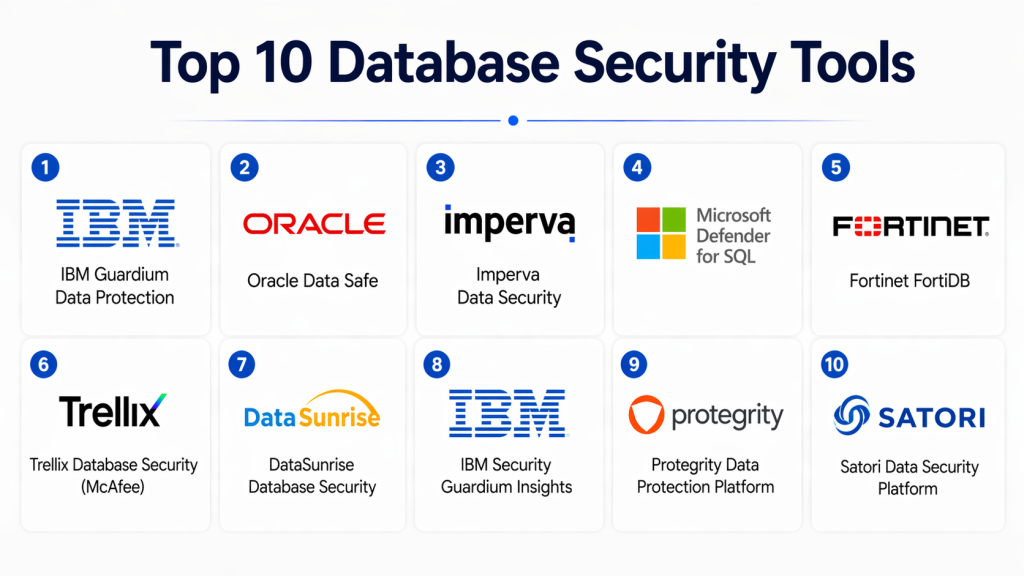 Database Security Tools help organizations protect databases from unauthorized access, data breaches, insider threats, and external cyberattacks. These tools ensure that sensitive data stored in relational and non-relational databases remains secure, compliant, and properly monitored.
