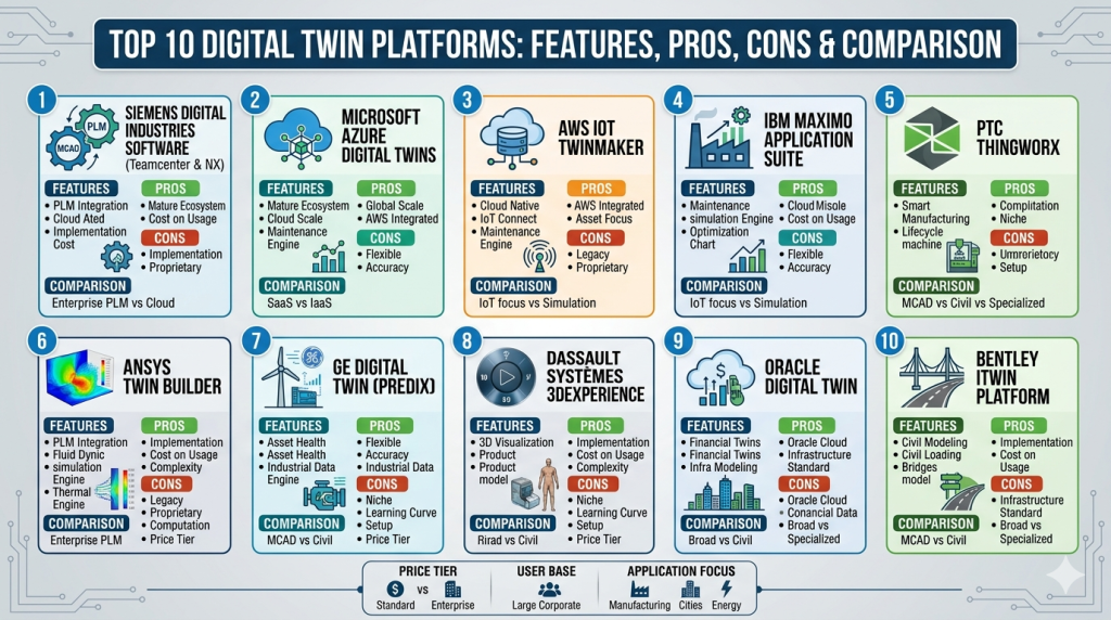 Top 10 Digital Twin Platforms: Features, Pros, Cons & Comparison