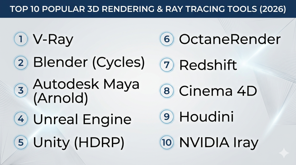 Here are the top 10 most popular 3D rendering and ray tracing tools used by professionals and beginners alike: