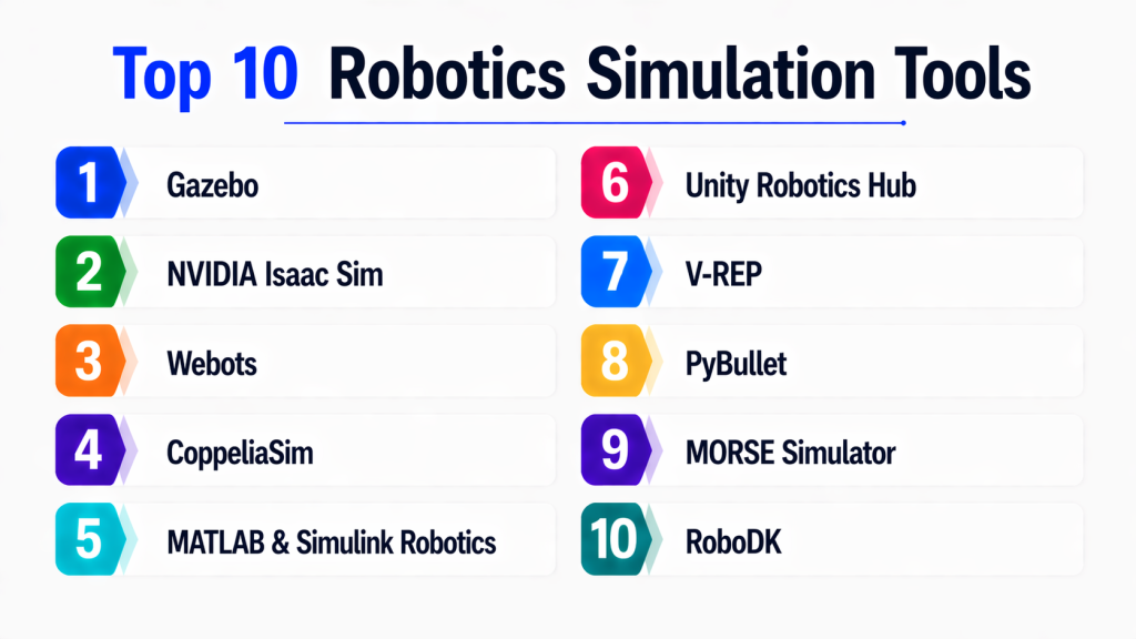 Top 10 Robotics Simulation Tools: Features, Pros, Cons & Comparison