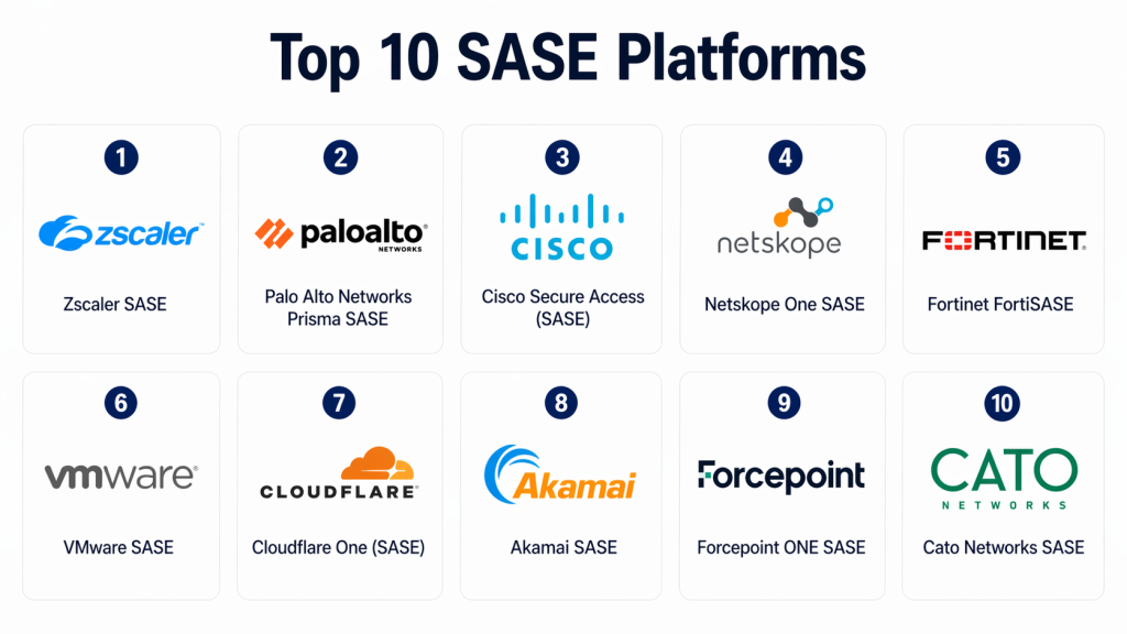 Zscaler, Prisma SASE, and Cisco are top choices.