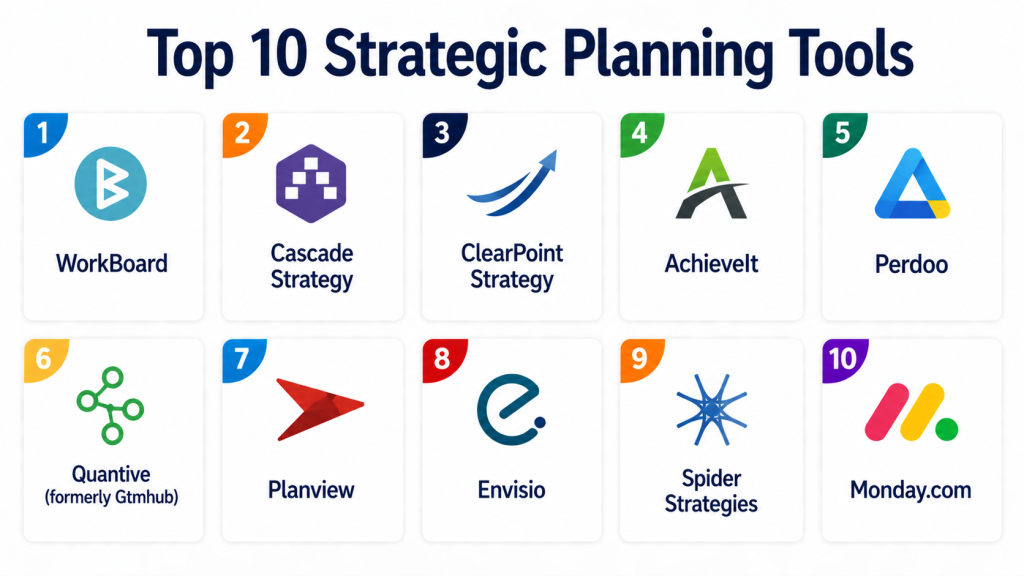 Strategic Planning Tools have become essential for organizations aiming to align goals, improve execution, and drive measurable outcomes. As businesses grow more complex and data-driven, these platforms provide the structure needed to connect high-level strategy with day-to-day operations. Enterprise solutions like WorkBoard and Planview deliver deep capabilities for large organizations, while tools like Perdoo and Monday.com offer accessible options for smaller teams seeking simplicity and flexibility.