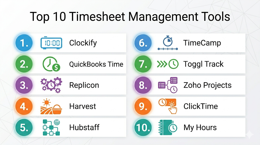 Timesheet management tools help organizations improve payroll accuracy, billing efficiency, workforce visibility, and compliance. The best choice depends on whether you prioritize simplicity, payroll integration, project billing, or enterprise governance. Small teams often succeed with Clockify or Toggl Track, while larger organizations may need Replicon or Hubstaff. Shortlist two or three tools, test real approval workflows, verify integrations, and confirm user adoption before rollout.